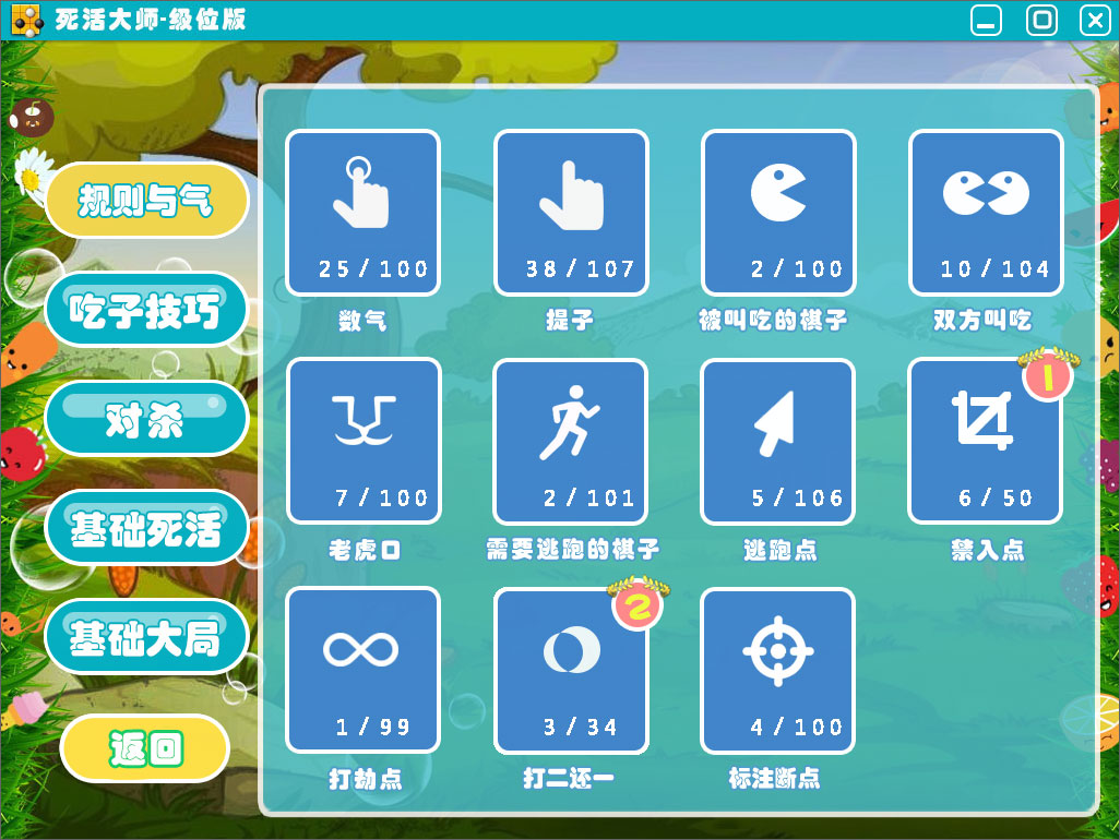 - 分为围棋启蒙、死活大师、实战练习3大板块。